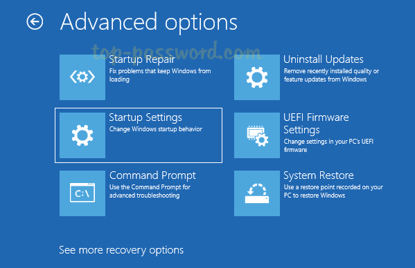 If you're already logged in to Windows account, click the Power icon in the Start Menu, hold down the Shift key while clicking the Restart.