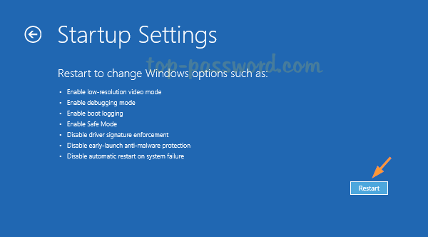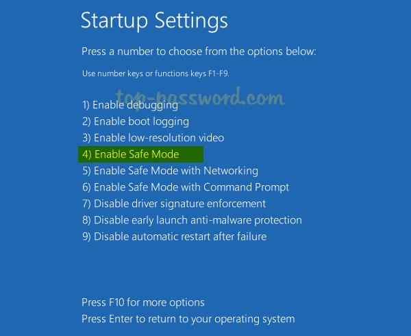 The computer will restart and boot to the Startup Settings menu. To start or boot your computer in Safe Mode, press 4 or F4 key on your keyboard.