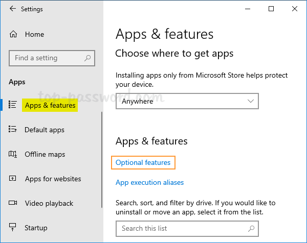 2. On the Apps & features page, click on the Optional features link in the right pane.