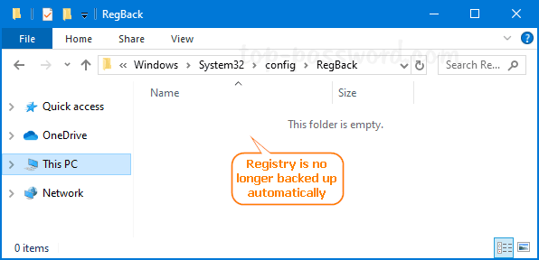 automatic registry backup windows 10 – Password Recovery https://www.top-password.com/blog Provide useful password recovery tricks, guides and software Tue, 02 Jul 2019 06:46:31 +0000 en-US hourly 1 https://wordpress.org/?v=6.8 How to Turn on Automatic Registry Backup in Windows 10 https://www.top-password.com/blog/turn-on-automatic-registry-backup-in-windows-10/ Tue, 02 Jul 2019 06:32:52 +0000 https://www.top-password.com/blog/?p=14657 Starting with the April 2018 Update (version 1803), Windows 10 stopped backing up the registry automatically to the RegBack folder, and Microsoft encourages users to use a system restore point in the event of registry corruption. Navigating to the Windows\System32\config\RegBack folder and you’ll find that it’s empty.