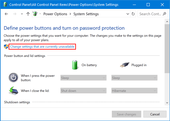 - If the options are grayed out, you have to click the “Change settings that are currently unavailable” link at the top.