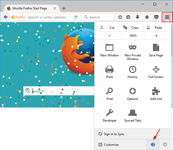 Click the three-line icon in the upper right corner of your Firefox window, and then click the Help icon (question mark) at the bottom.