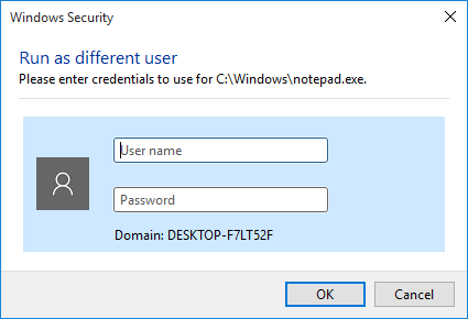 For example, if you want to open Notepad as your Windows user Bob, the command line would be as below.
