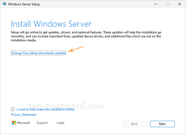 - The “Windows Server Setup” dialog will come up. Don’t worry about this as it will just launch the in-place upgrade rather than installing Windows Server. In my case, I just plan to upgrade my current Windows 11 Pro 23H2 to the latest release 24H2. Make sure you click the “Change how Setup downloads updates” option.