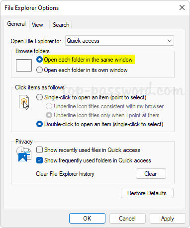 How to Stop Folders from Opening in New Window on Windows 11 / 10 / 8 / 7 https://www.top-password.com/blog/stop-folders-from-opening-in-new-window-on-windows/ Wed, 01 Jun 2022 03:27:09 +0000 https://www.top-password.com/blog/?p=18360 Folders always open in new window? File Explorer opens every folder in its own folder window? This can be quite annoying because you may get too many new windows after navigating through some folders. In this tutorial we’ll walk you through the steps to stop folders from opening in new window on Windows 11 / 10 / 8 / 7.