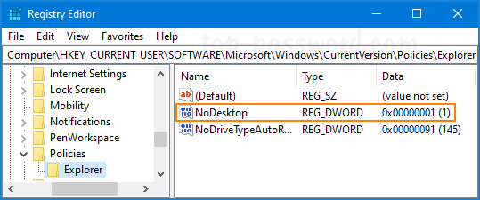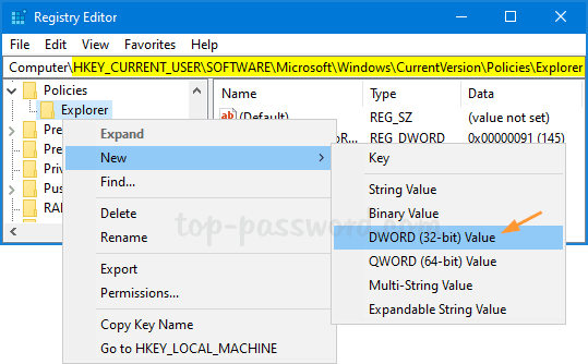 HKEY_CURRENT_USER\Software\Microsoft\Windows\CurrentVersion\Policies\Explorer