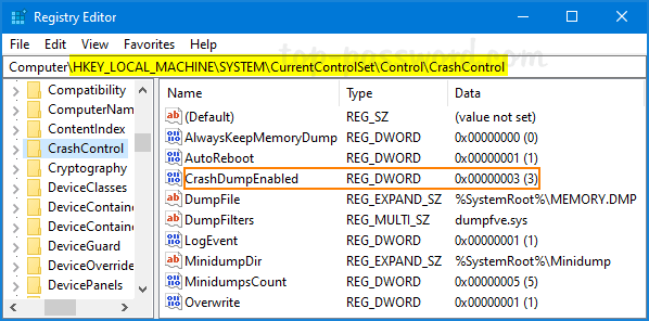 HKEY_LOCAL_MACHINE\SYSTEM\CurrentControlSet\Control\CrashControl