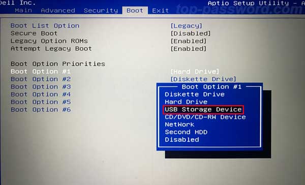 2. Plug the USB drive into your locked computer. Enter into the BIOS setup and change the boot sequence to force your computer to boot from USB drive first.