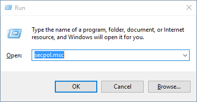 1. Press Windows key + R to open the Run box. Type secpol.msc and hit Enter.