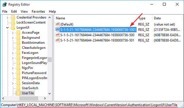 HKEY_LOCAL_MACHINE\SOFTWARE\Microsoft\Windows\CurrentVersion\Authentication\LogonUI\UserTile